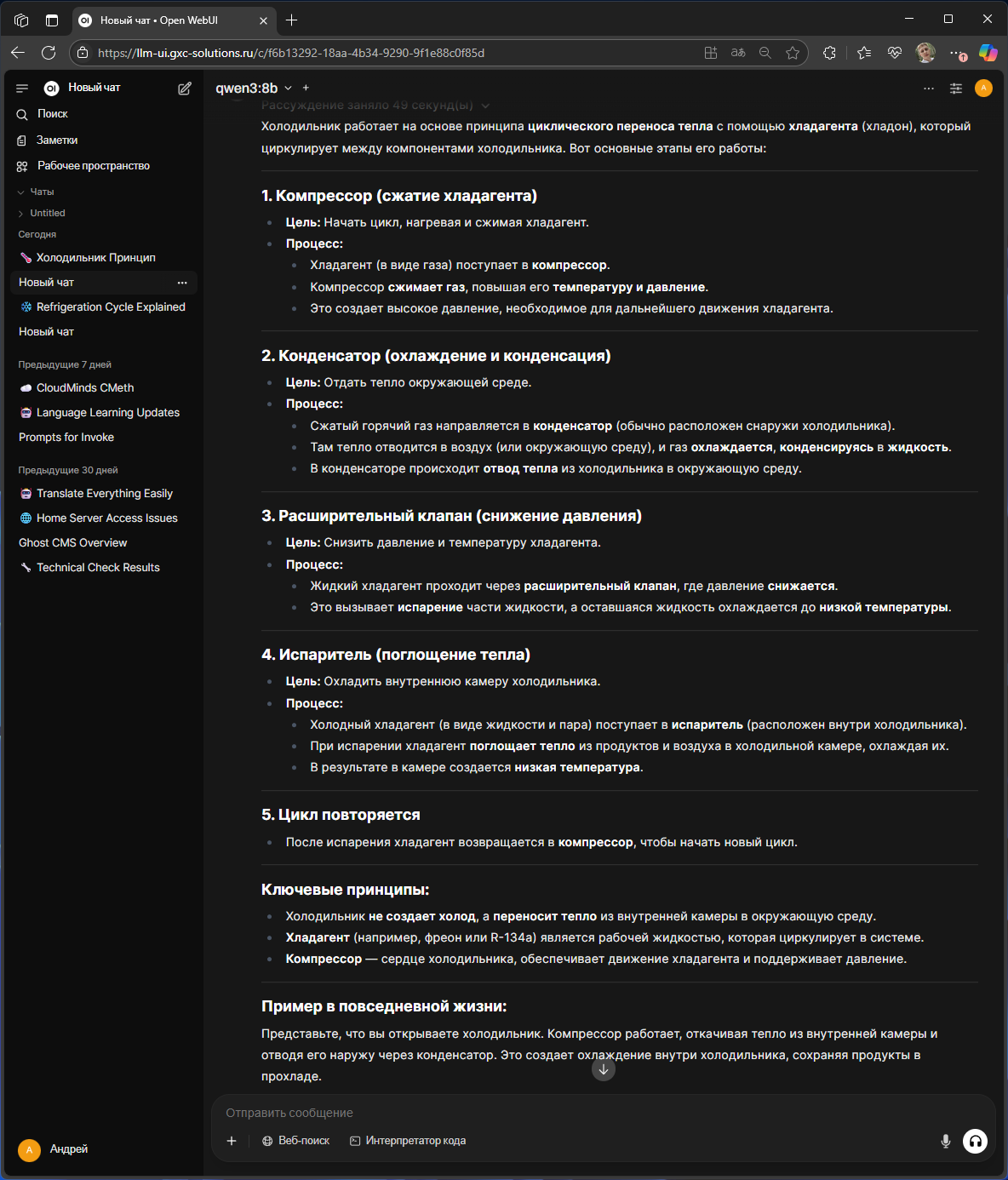 Сравнение ответов LLM моделей на просьбу объяснить принцип работы холодильника