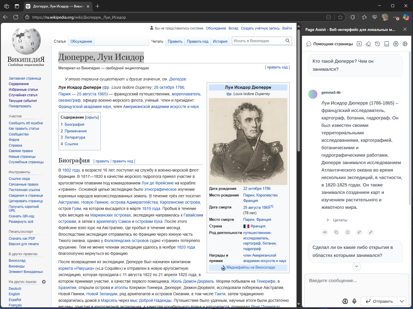 Page assistent - браузерное расширение позволяющее взаимодействовать с LLM прямо в браузере. Из интересной функциональности - возможность извлекать данные со страницы и задавать вопросы о содержимом.